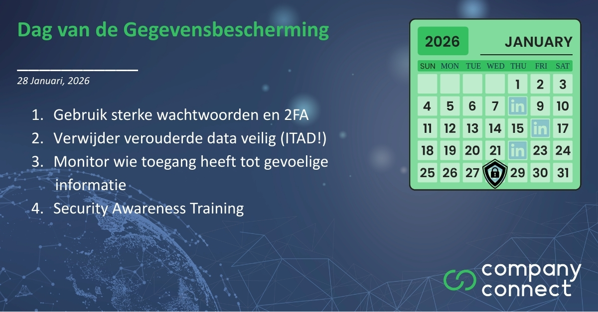 Vandaag is het Dag van de Gegevensbescherming!Een mooie reminder dat privacy en veiligheid van data prioriteit hebben. Met deze 4
